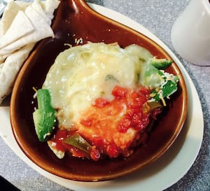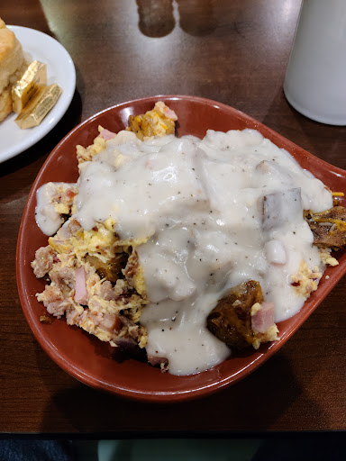 Cousin Johnny Went For One Of The Daily Specials The Tombstone Scramble This Features Three Eggs Tomat Best Enchiladas Chicken Fried Steak Gooey Sticky Buns